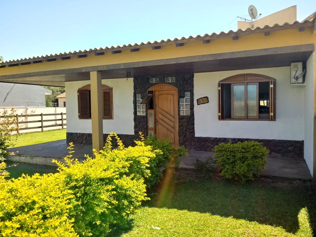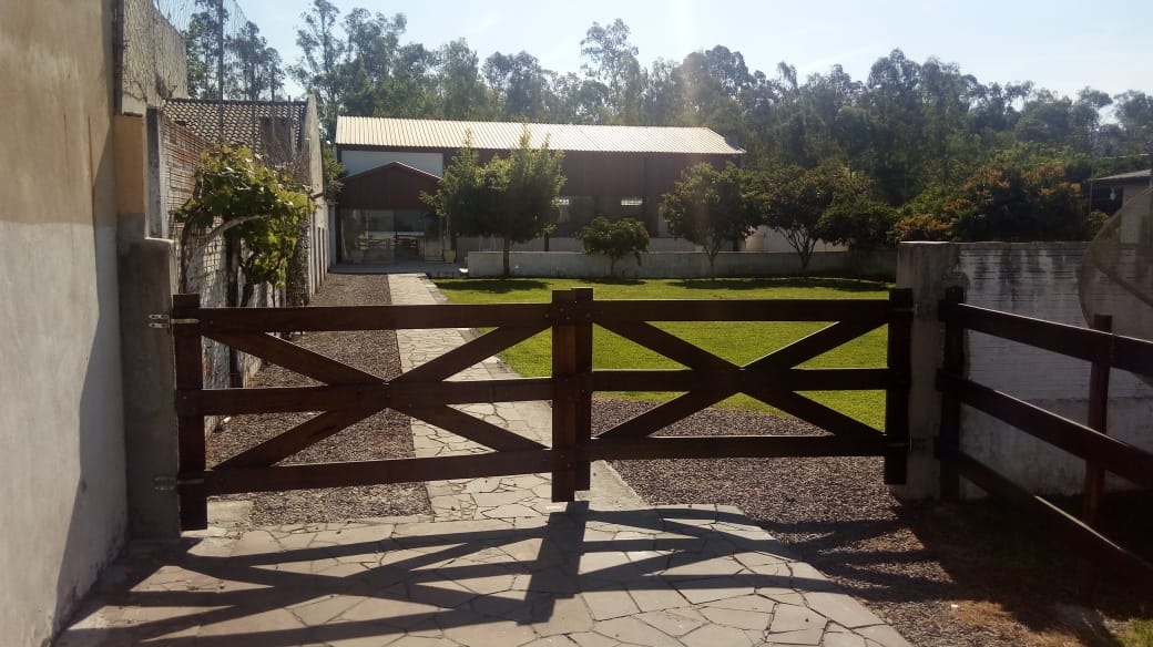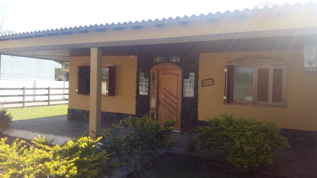 Linda casa em Camobi, terreno trenado, com árvores frutíferas, quiosque, amplo salão de festas com 214m², com cozinha, churrasqueira, banheiro masculino e feminino, fraldário, com acesso independente da casa principal.
